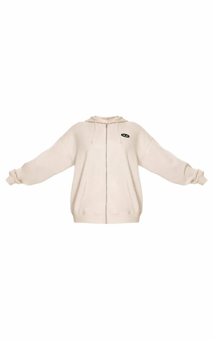 Elevate your off duty days with this PrettyLittleThing cream contrast logo badge oversized zip through hoodie. Brought to you in a cream hue material with a contrast logo badge detail and oversized fit, this zip through hoodie is a must have. Style with the matching sweatpants, a white tee and fresh kicks for a chic combo perfect for those chilled days.