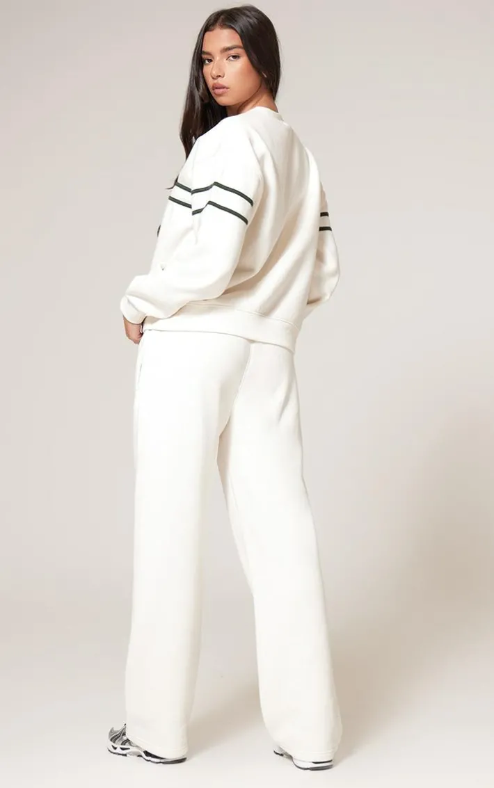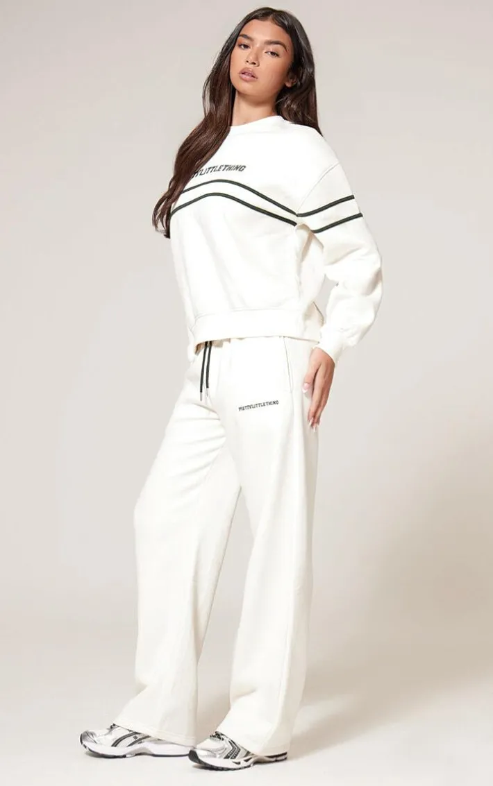 Take your sweats collection to the next level with these PrettyLittleThing cream contrast print wide leg sweatpants. With their cream hue and contrast print ‘PrettyLittleThing’ logo, our wide leg sweatpants are the wardrobe staple you need. Shop the look and pair with our cream Sweatshirt, chunky sneakers and a basic tee.