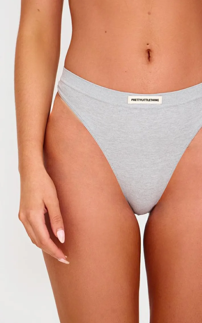 Keep it comfy with this PrettyLittleThing grey badge seamless thong. Brought to you in a grey material with a badge detail and a seamless design, giving you a flattering fit like no other. Team this thong with a bra of your choice under your outfit of the day to complete your off-duty look we are obsessing over.