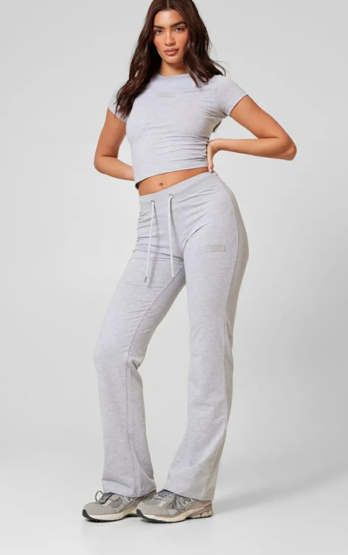 Say hello to your new go-to essentials with these PrettyLittleThing grey marl badge low rise straight leg pants. Brought to you in a grey marl material with a badge detail and a low rise fit, what’s not to love? These straight leg pants will answer all of those what to wear dilemmas. Pair with the matching top and a pair of sneakers to finish off the look.