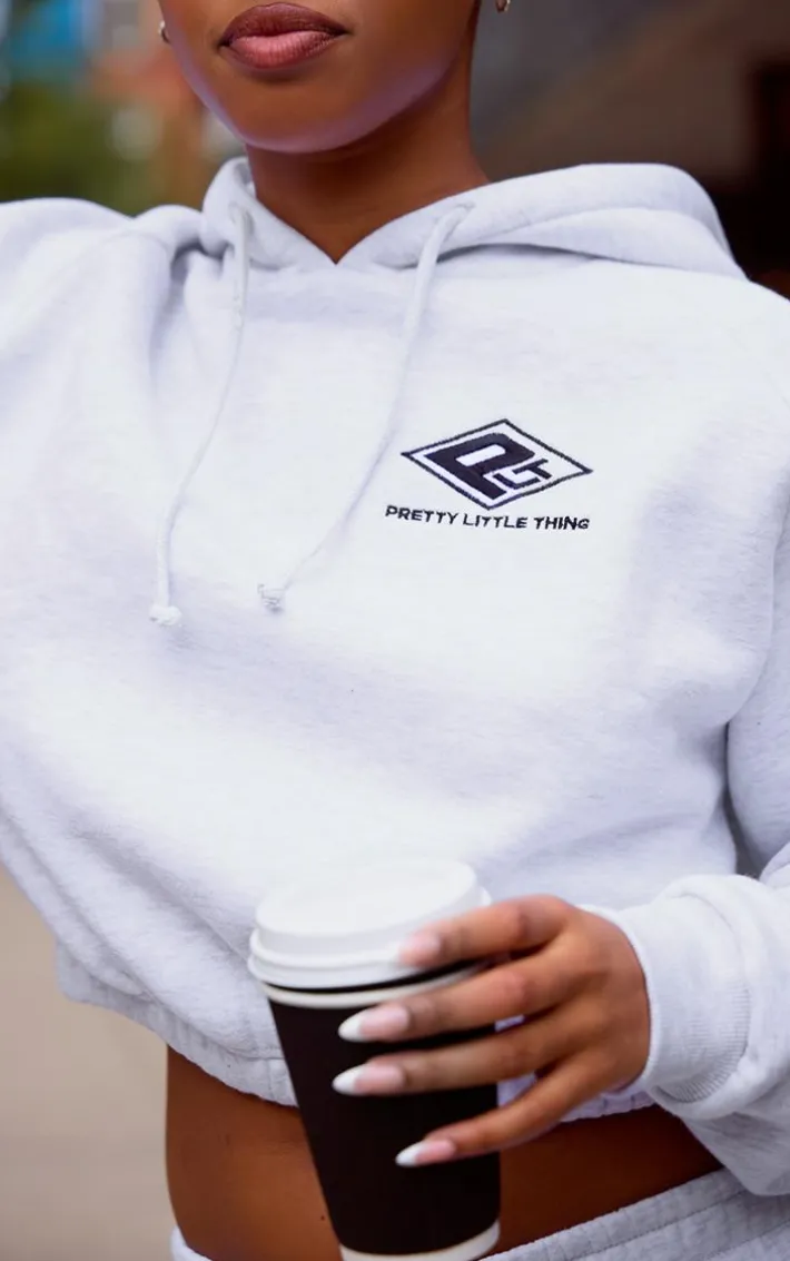 Your weekend coffee run is calling out for this PrettyLittleThing grey marl embroidered cinched waist cropped hoodie. With its cropped length, grey marl fabric and cinched waist design, what more could you want. This cropped hoodie also features a ‘PrettyLittleThing’ embroidered logo. Just add the matching sweatpants, sneakers and silver hoops to complete the look.