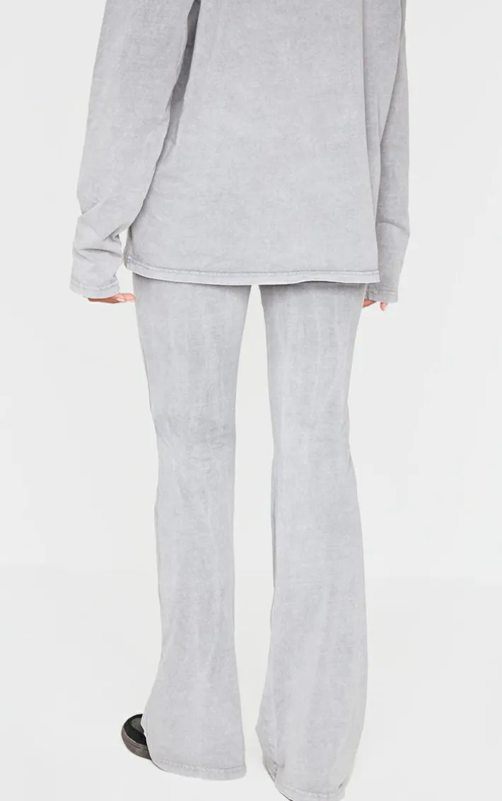 Your retail therapy ‘fit is sorted with our PrettyLittleThing light grey embossed logo washed skinny flare pants. With their figure-hugging skinny fit, ‘PrettyLittleThing’ embossed logo and light grey washed fabric, they’re your everyday elevated. Step out in style with the matching t-shirt, black sneakers and a tote bag.
