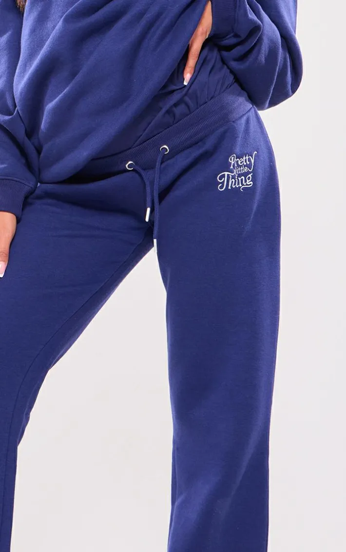 Take your day on in style with these PrettyLittleThing maternity navy embroidered wide leg sweatpants. These sweatpants are brought to you in a navy hue with an embroidered design and a wide leg fit, how could you say no? Complete the look by styling these with the matching Sweatshirt, box-fresh kicks and accessories for a look like no other.