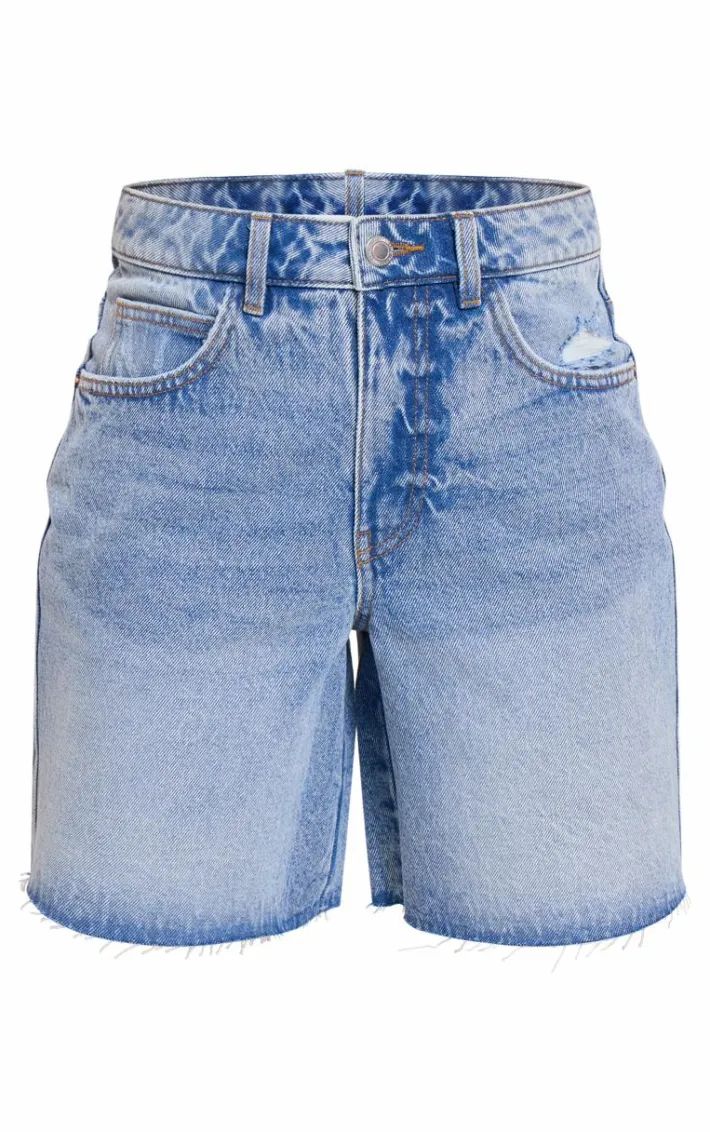 Your new season wardrobe wouldn’t be complete without these PrettyLittleThing mid blue wash raw hem longline loose fit denim shorts, we’re in love. These shorts are made using a mid blue wash denim material with a raw hem design and a loose fit, you’ll be adding them straight to your basket. Just add a basic t shirt, chunky sneakers and your staple accessories for a look you’ll be reaching for again and again.
