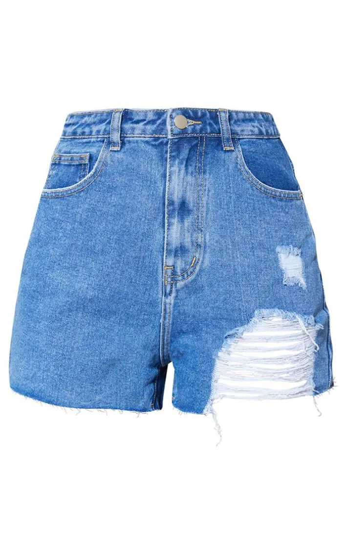 Give your denim collection a new off-duty saviour with these distressed shorts. Featuring a mid blue wash denim with distressed detailing and a high waist fit, just add a white tee for a classic combo that can be dressed up or down.