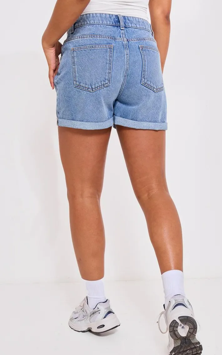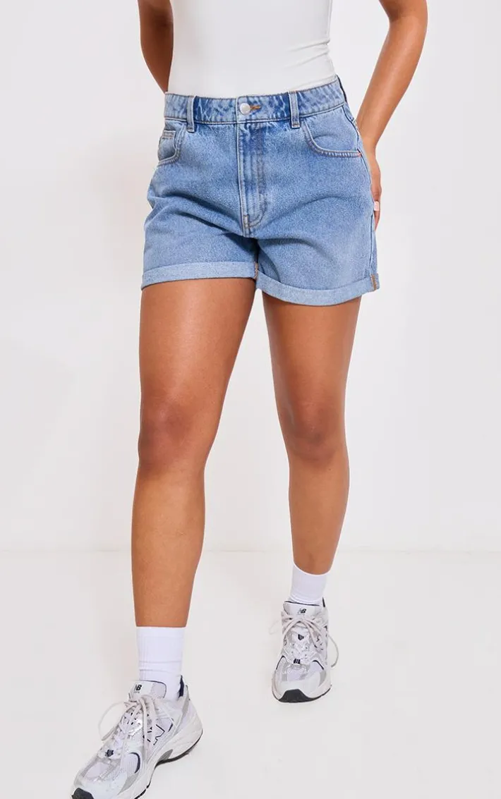 Switch out your staple pair of denim shorts for these PrettyLittleThing mid blue wash turn up mom denim shorts. Brought to you in a mid blue wash denim material with a turn up design and a flattering fit, how can you go wrong? Team these mom shorts with a Vest top, sneakers and your everyday accessories for an off-duty look we just can’t get enough of.
