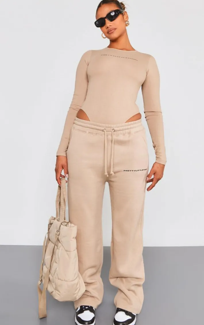 We’re in love with these PrettyLittleThing mocha logo straight leg sweatpants for your new season wardrobe. Made from a mocha hue material with a ‘PrettyLittleThing’ logo detail and a straight-leg fit, what more could you ask for? These sweatpants are a must-have for your wardrobe and will be the one piece you keep reaching for time after time. Style seamlessly with the matching bodysuit, box-fresh sneakers and a tote bag for a ready-to-go finish.