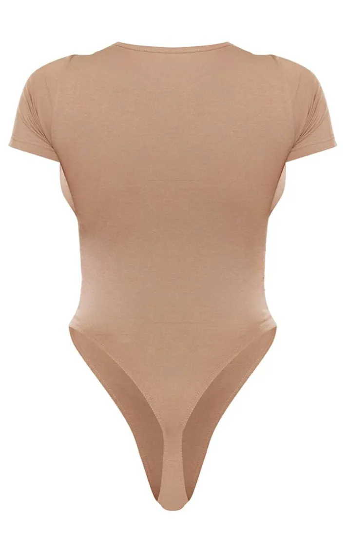 This PrettyLittleThing mocha short sleeve bodysuit is sure to be the perfect base layer for your new season wardrobe. Featuring a mocha material with short sleeves and a figure-hugging fit. Team with the matching bottoms and simple accessories for a look we are loving.