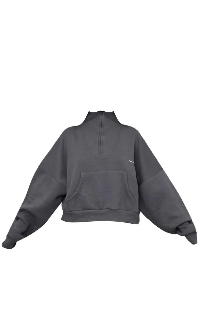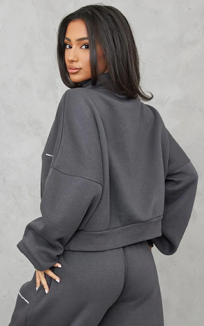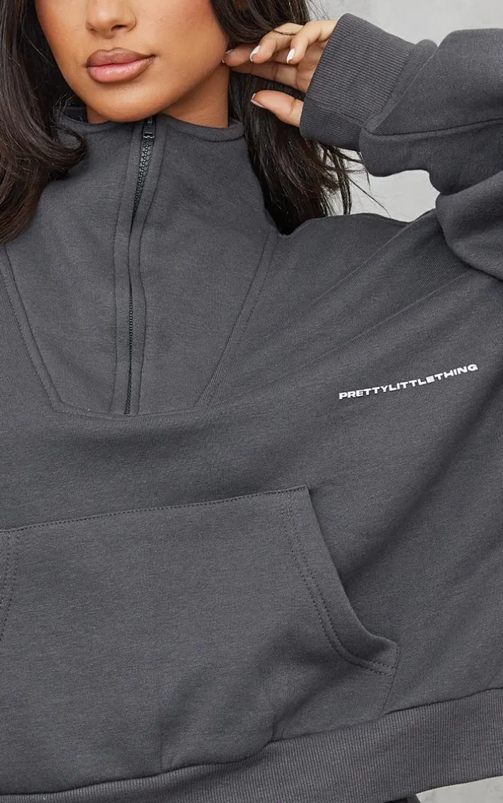 We are obsessed over this petite charcoal PrettyLittleThing half zip oversized sweat and the chilled vibes it gives. With its charcoal sweat material and oversized fit, it is the perfect piece for those do-nothing days. This petite sweat has a ‘PrettyLittleThing’ graphic print and a half zip fastening to add some extra points to your off-duty look. Team this petite sweat with the matching sweatpants and minimal accessories for a super relaxed look.