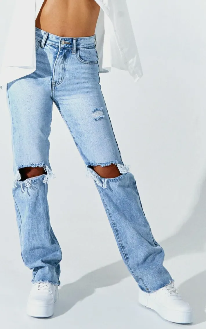 These jeans are perfect for the new season wardrobe. Featuring a light blue wash denim with distressed detailing and a straight leg fit, complete the look with a shirt and some fresh chunky kicks to keep it effortlessly chilled.