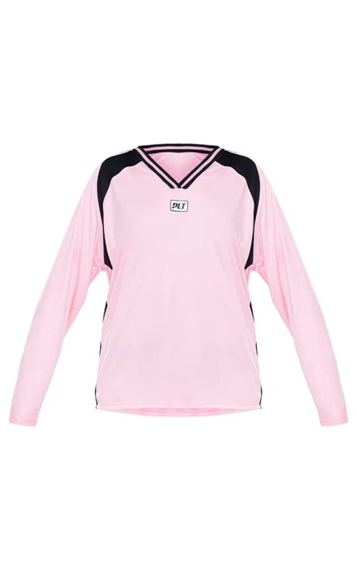 Stay in style this season with this PrettyLittleThing pink studio mode long sleeve football shirt. Brought to you in a pink hue material with a ‘Studio Mode’ graphic detail and long sleeve design, this football shirt is at the top of our wish list. Style with bloomer shorts, chunky biker boots and simple accessories for a look that won’t miss.