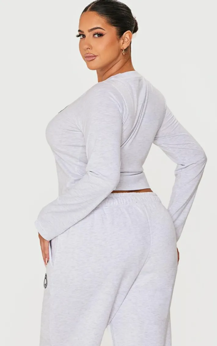 Take on those chilled days in style with this PrettyLittleThing plus ash grey printed fitted long sleeve t-shirt. Brought to you in an ash grey hue material with a ‘PrettyLittleThing’ printed design and long sleeves, what’s not to love? Pair this ash grey top with the matching bottoms and sneakers for a look you will be reaching for again and again.