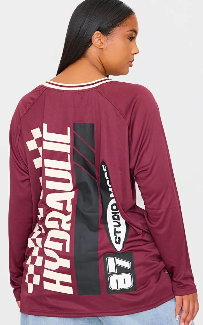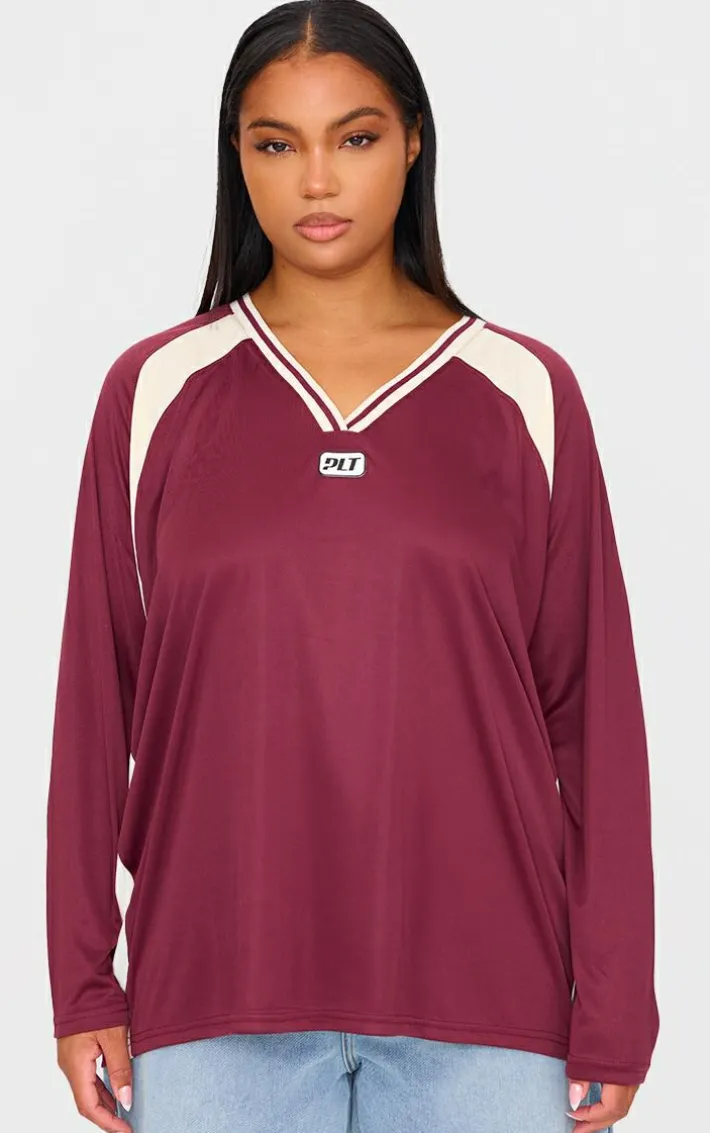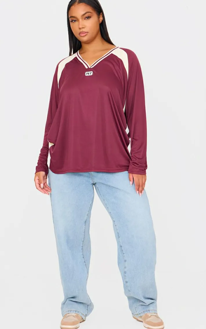 For those off-duty days when you want to bring the edge, this PrettyLittleThing plus burgundy studio mode long sleeve football t shirt is a must have. Brought to you in a burgundy material with a long sleeve design, thus football t shirt is all you need for those laid back days. Team with a pair of jeans and your fave accessories for a look that will have you setting trends no matter what.