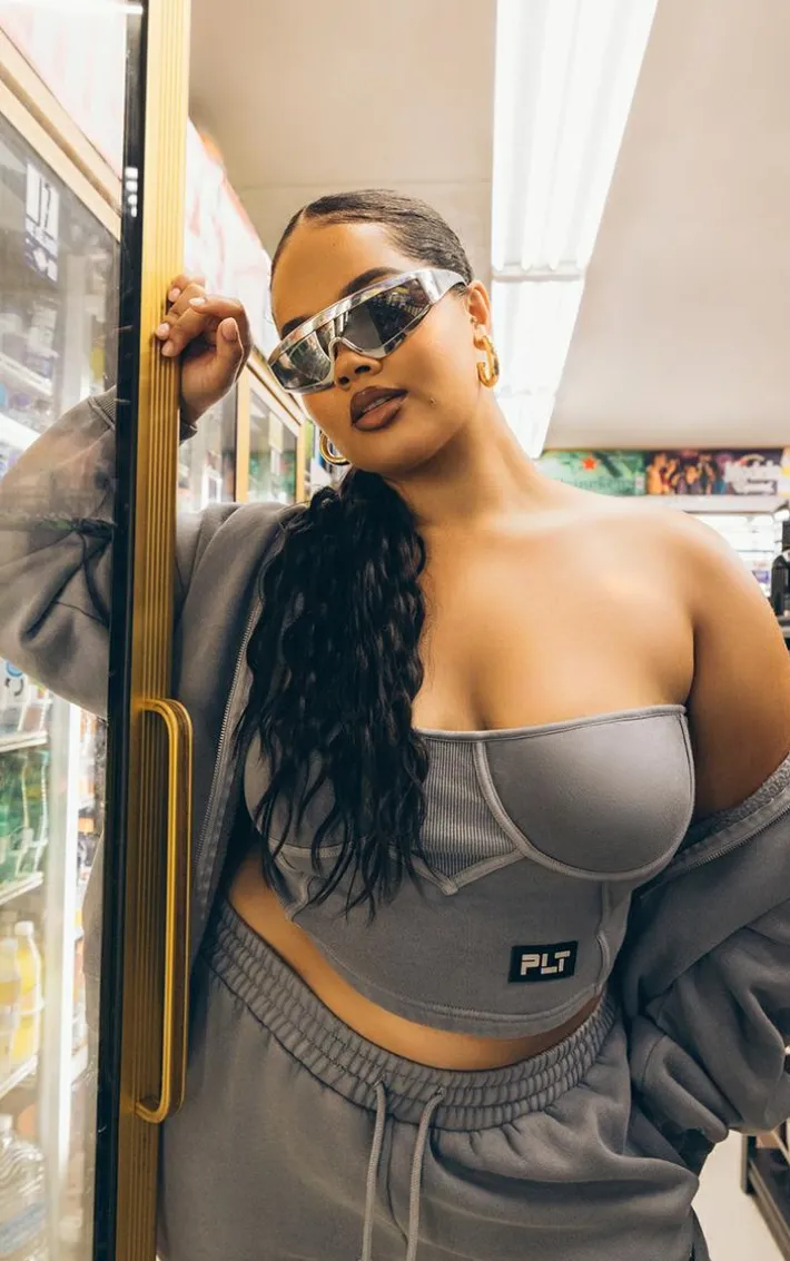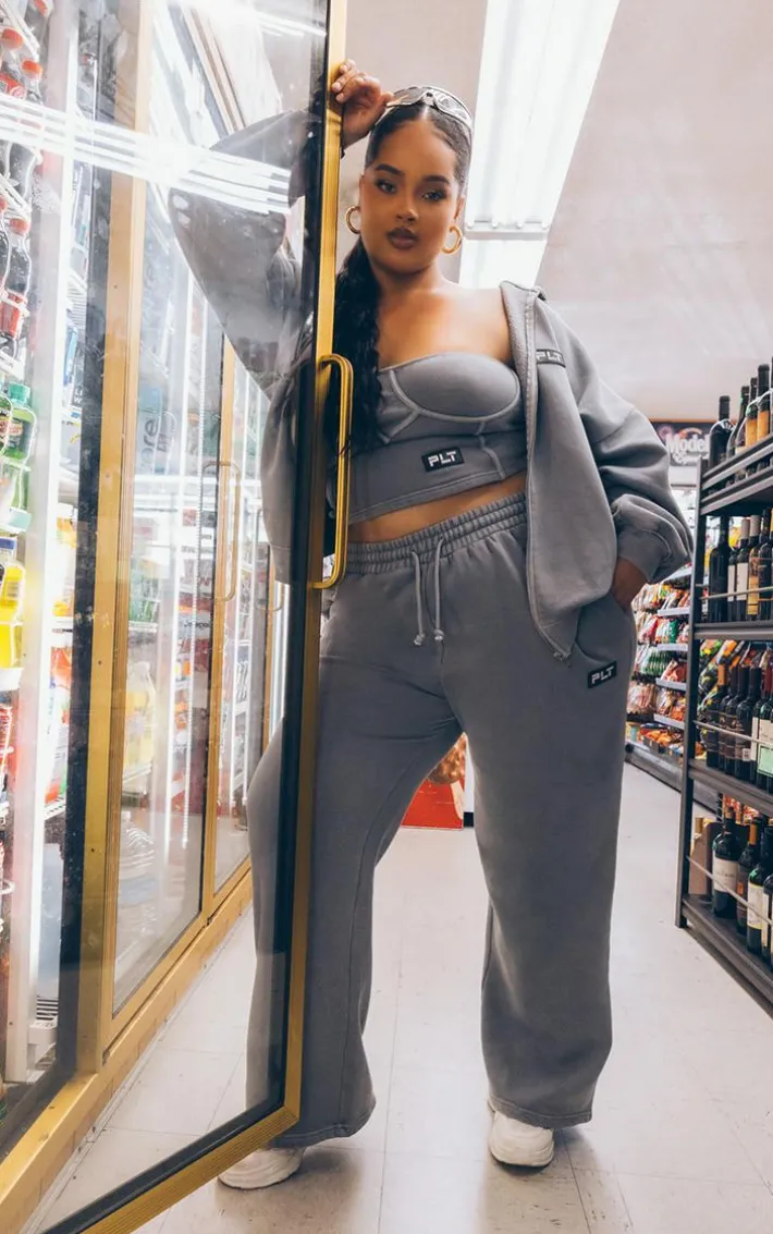 Give your off-duty wardrobe the update it deserves with this PrettyLittleThing plus grey washed badge detail zip up hoodie. Brought to you in a washed grey hue material with a ‘PrettyLittleThing’ badge and a zip up design, what more could you ask for? Keep it casual and team this hoodie with the matching sweatpants and chunky sneakers for a seriously comfy off-duty ‘fit that is perfect for those chilled days and beyond.