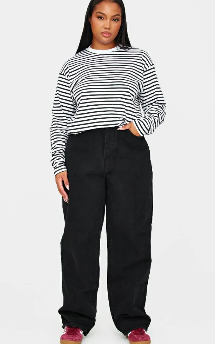 Update your new season wardrobe with these jeans. Featuring a washed black denim material with a high waisted fit and boyfriend fit, team them with a glitter crop top and heels for a look that will get heads turning.