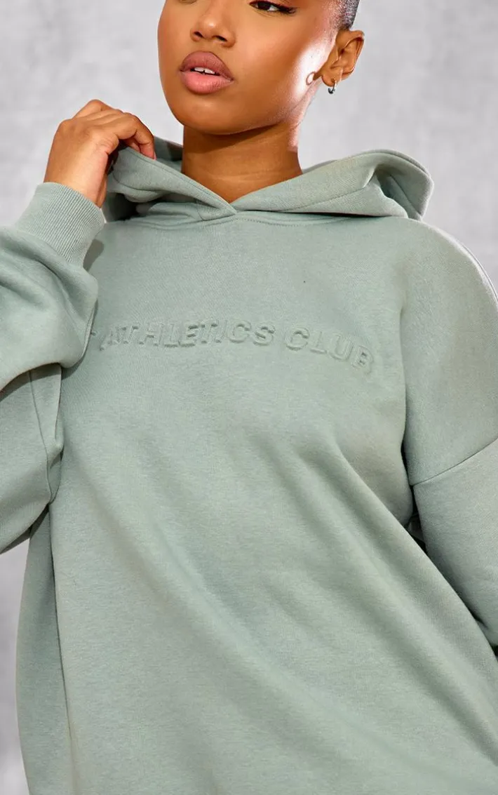 Stay in style this season with this PrettyLittleThing sage athletics club embossed Graphic oversized hoodie. Brought to you in a sage hue material with an ‘Athletics Club’ embossed Graphic detail and oversized fit, this hoodie is a must have. How can you resist? Style with the matching sweatpants, fresh kicks and simple accessories for a look like no other.
