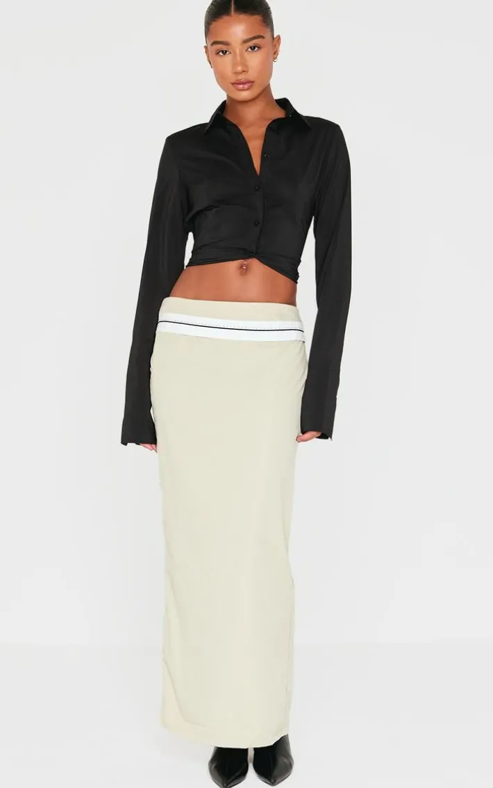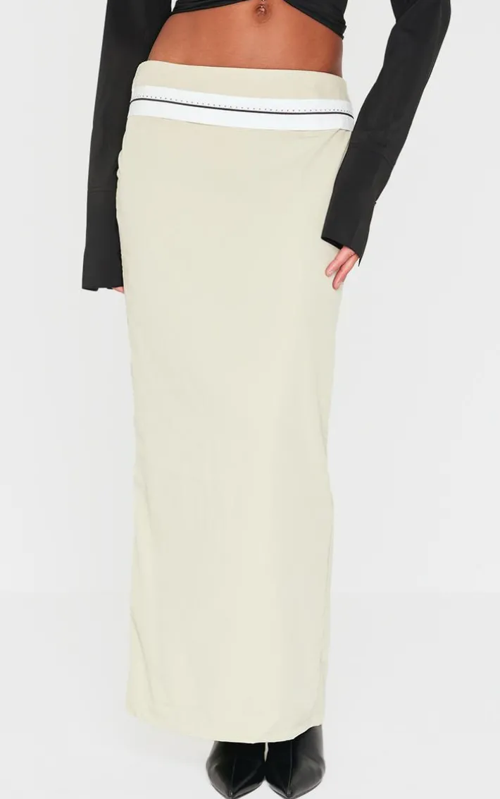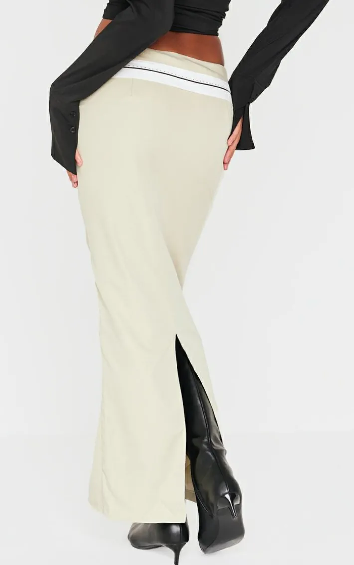 Bring all the dreamy hues to your new season wardrobe with this PrettyLittleThing sage contrast foldover waistband maxi skirt. Brought to you in a sage hue material with a contrasting foldover waistband design and a figure-hugging maxi fit, how can you resist? Style this maxi skirt with a basic tee, heels and gold accessories for a look that is sure to make heads turn.