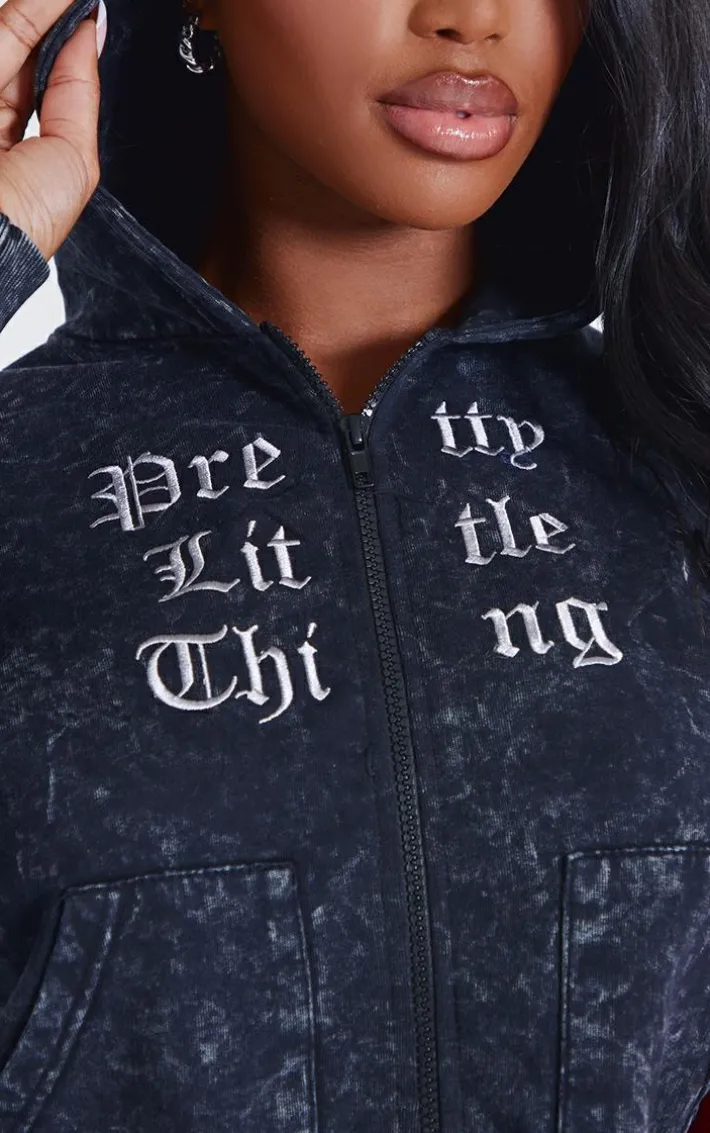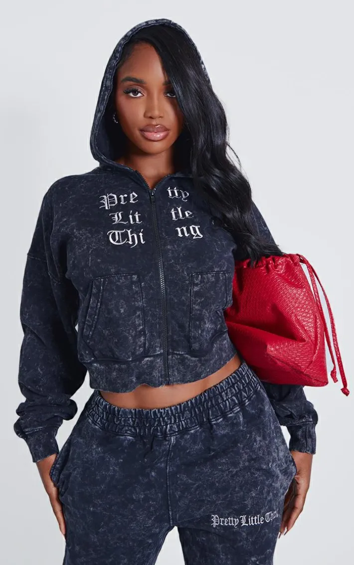 Take your everyday look to the next level with this PrettyLittleThing shape charcoal grey printed zip through washed hoodie, perfect for your everyday styling and beyond. Brought to you in a charcoal washed material with a printed design for a little added edge, we simply can’t get enough. With it’s versatile style and zip through detail, this hoodie is sure to be your new go-to. Style with the matching bottoms and a pair of comfy sneakers for a look that we can’t get enough of.