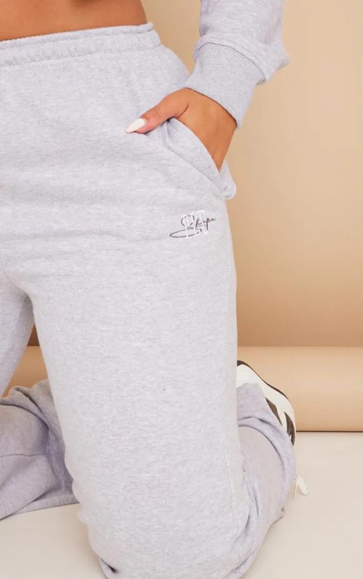 Your chilled days are in need of these PrettyLittleThing shape grey marl embroidered straight legged sweatpants. Made from a grey marl material with a ‘PrettyLittleThing’ embroidered design and a straight leg fit, how could you say no? Whether you’re spending the day relaxing at home or running errands, these sweatpants needs to be your go-to. Style it with the matching bralette and jacket for the perfect off-duty fit.