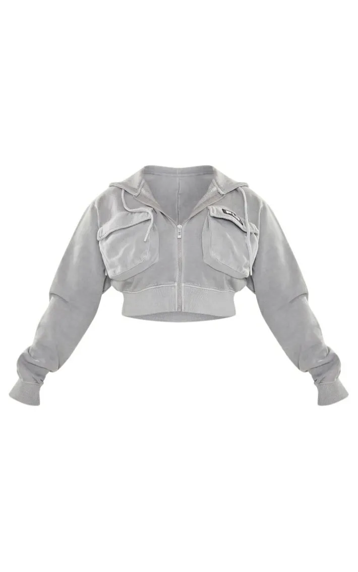 Get your new season look on point with this PrettyLittleThing grey marl washed cargo cropped hoodie. Brought to you in a washed grey marl material with a cargo design, a zip through fastening and a cropped fit, how can you resist? Style this cropped hoodie seamlessly with the matching bottoms, heels and gold accessories for a fierce weekend-worthy look like no other.