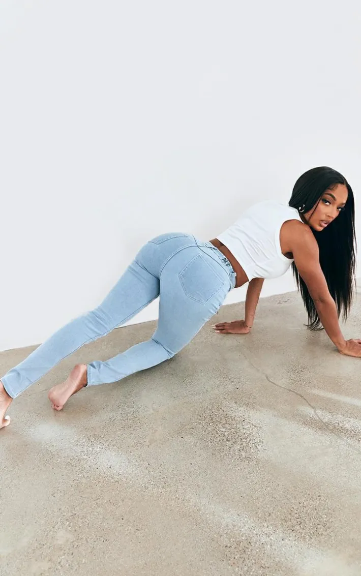 These jeans are the answer to all your styling dilemmas this season. Featuring a light blue wash material with a high waisted fit and a super stretch design, what’s not to love? Pair this with a crop top and simple accessories for a look that needs no extras.
