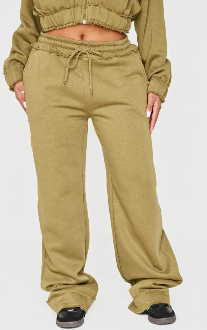 Elevate your laid-back collection with these PrettyLittleThing shape olive distressed elasticated waistband wide leg sweatpants. Brought to you in an olive hue material with a distressed detail, elasticated waistband design and wide leg fit, how can you resist? Team these sweatpants with the matching top, fresh kicks and simple accessories for an off duty combo we’re loving.