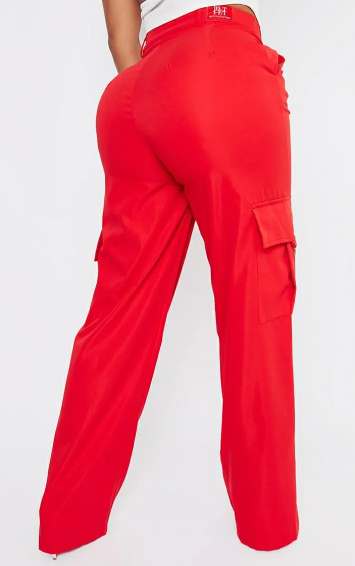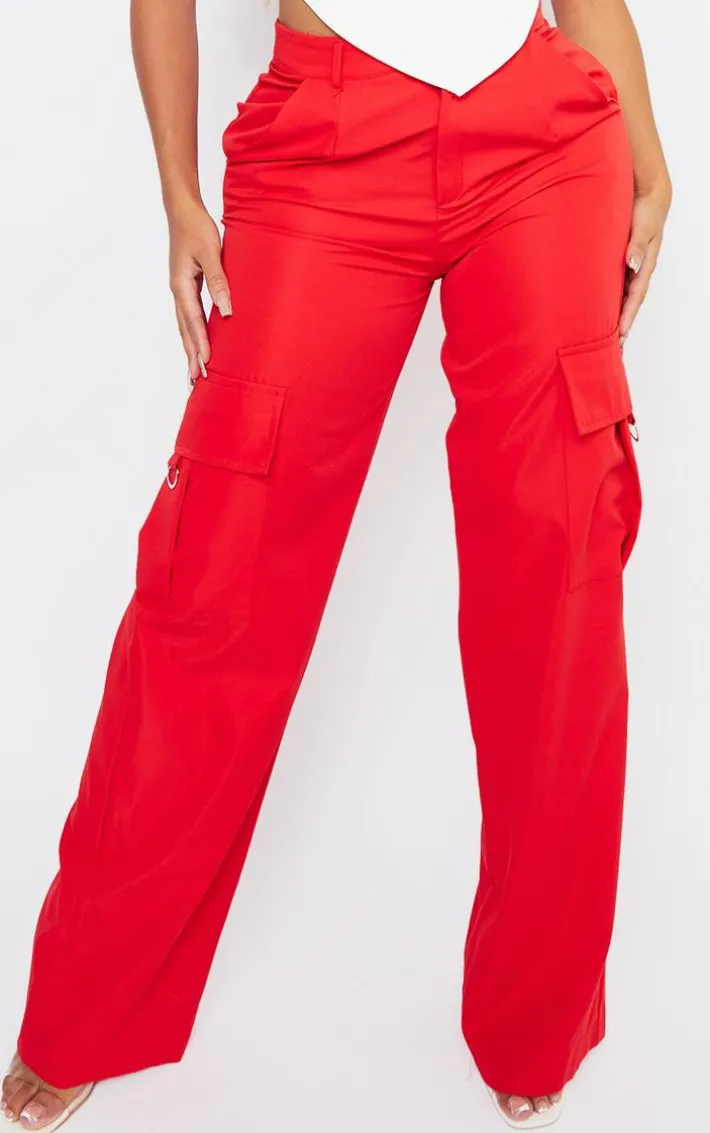 These bold cargo bottoms are sure to have all eyes on you. Featuring a red material with buckle detailing, a cargo design and a wide leg fit. Team with a crop top and strappy heels to get the look we are loving.