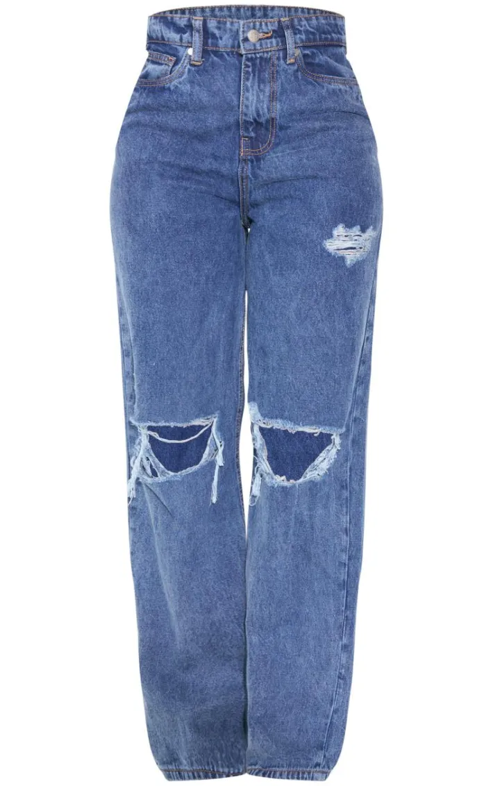 Add a little edge to your new season wardrobe with these jeans. Featuring a vintage wash material with an extreme rip design and a wide leg fit. Team with a statement hue crop top and heels for a night.