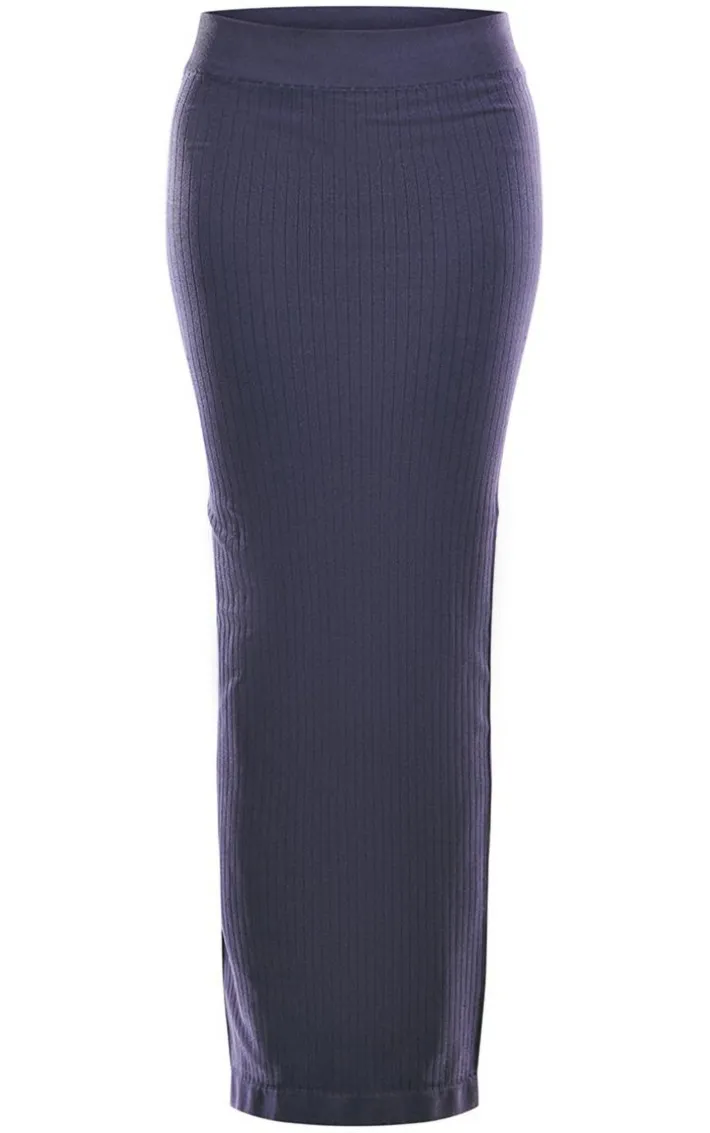 Up your style game with this steel blue washed wide snatched rib low rise midaxi skirt. This skirt is made from a steel blue rib material with a low rise design for a flattering fit you won’t want to resist. In a midaxi length, we are seriously obsessed. Team with a bandeau top and some statement heels to elevate the look even further.