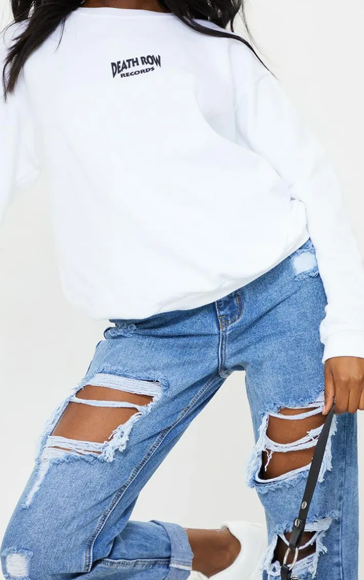 We are loving these jeans to elevate any look. Featuring a mid blue denim material with distressed rip detailing and a figure-flattering fit, team these with a white bodysuit and complete the look with some lace-up kicks.
