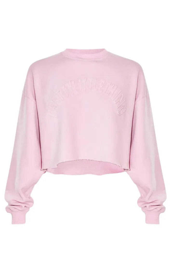 Look pretty in pink in this PrettyLittleThing tall washed pink distressed varsity cropped Sweatshirt. Brought to you in a washed pink material with a distressed ‘PrettyLittleThing’ print design and a cropped fit, what’s not to love? Pair this cropped Sweatshirt with the matching sweatpants and sneakers for an effortless everyday look like no other.