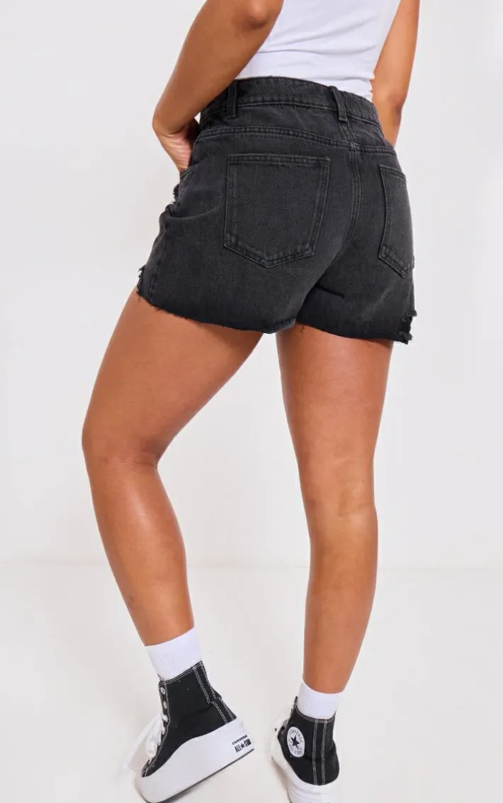Meet your new season style saviour with these PrettyLittleThing washed black distressed high rise mom denim shorts. Brought to you in a washed black denim material with a high rise design, distressed detailing and a mom fit, what more could you need? Style these denim shorts with a bodysuit and sneakers for a fierce off-duty ‘fit we just can’t get enough of.