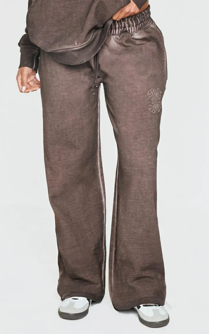 Elevate your sweats collection with these PrettyLittleThing washed brown premium embossed wide leg sweatpants. With their washed brown premium fabric, embossed ‘PLT’ logo and wide leg fit, these sweatpants bring together style and comfort. Shop the look and pair with the matching hoodie, kicks and silver studs.
