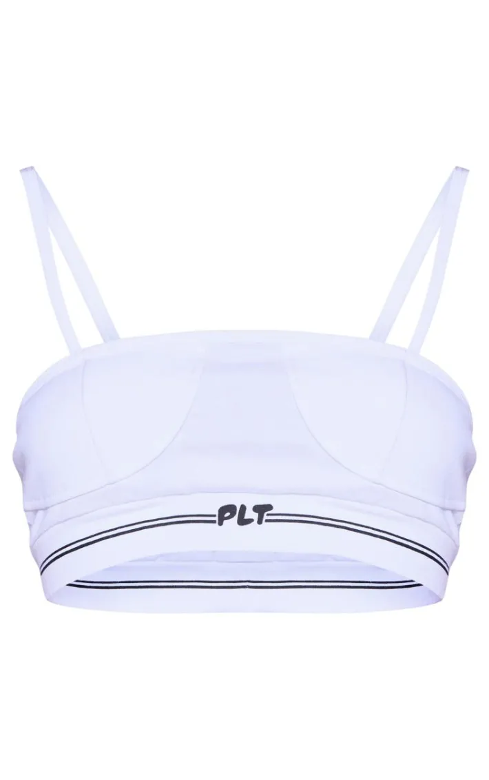This PrettyLittleThing white badge cup detail jersey bralette is perfect for those chilled nights in. Brought to you in a white hue jersey material with cup detailing and a ‘PrettyLittleThing’ badge, how can you resist? Pair this white bralette with the matching pieces for a comfy look we’re loving.