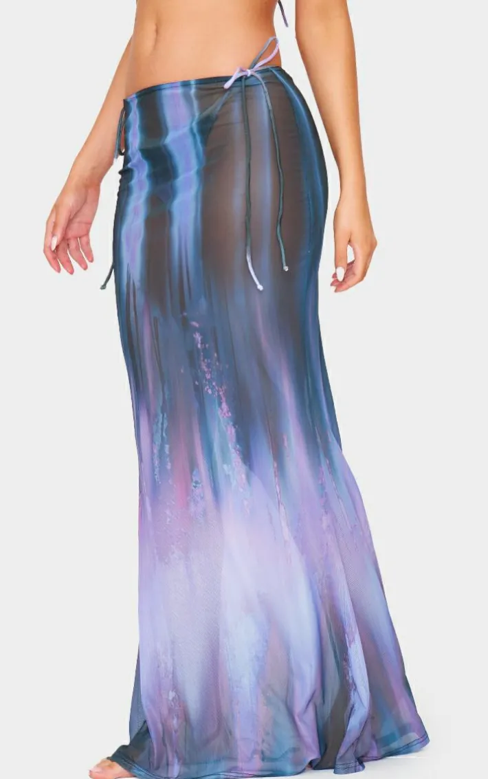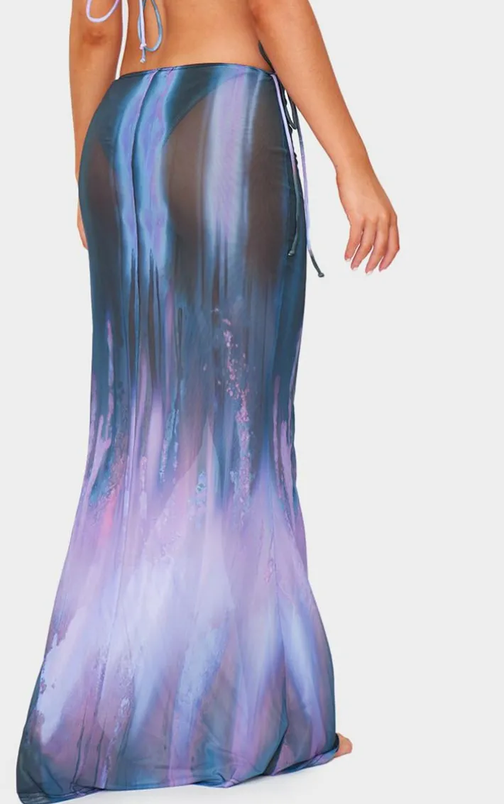 Chase that winter sun in style with this purple blur print mesh bodycon maxi beach skirt. Brought to you in a purple hue mesh material with a blur print design and bodycon design, this maxi beach skirt is all the new you need. Style with the matching bikini set and simple accessories for a look guaranteed to get you noticed.