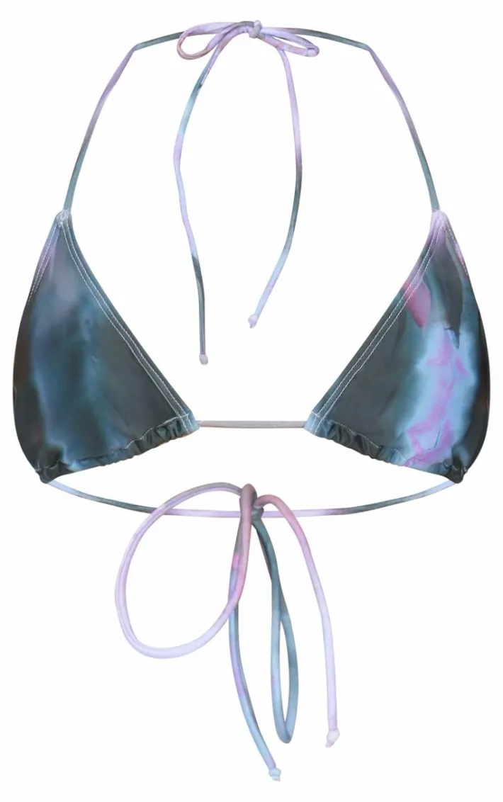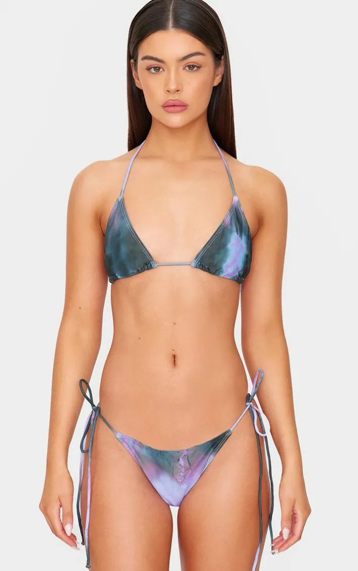 Look all kinds of chic in this purple blur print triangle bikini top. Brought to you in a purple hue material with a blur print design and triangle detail, this bikini top is all the new you need. Style with the matching bikini bottoms and maxi beach skirt for a combo we’re loving this season.