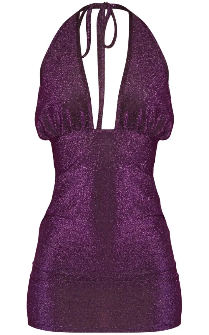 Take your everyday look to the next level with this purple glitter slinky halter neck mini dress. Brought to you in a purple glitter material with a halterneck design, we simply can’tget enough of this unreal mini dress. This dress is sure to be your new go-to for all of those upcoming occasions. Pair with your fave heels and gold hoops for a look that we can’tget enough of.