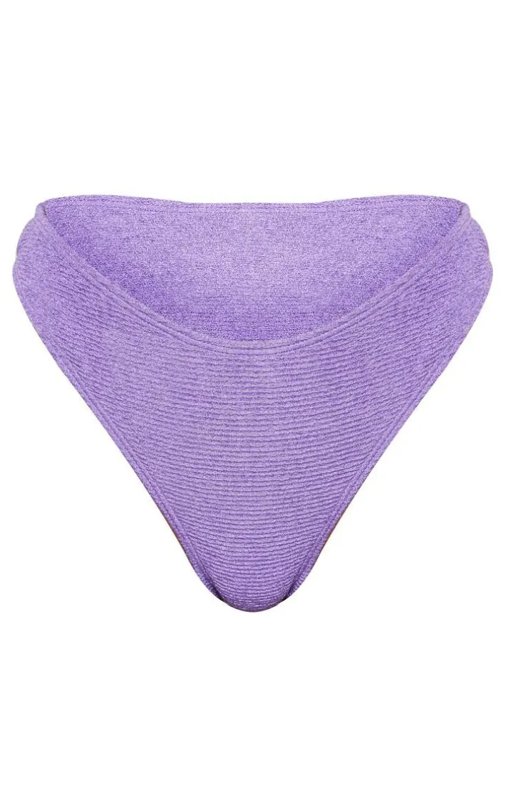 Show off your shape in these figure-worshipping bikini bottoms. Featuring a purple crinkle fabric with a cheeky bum design style these bottoms with the matching bikini top for the ultimate vacay look.