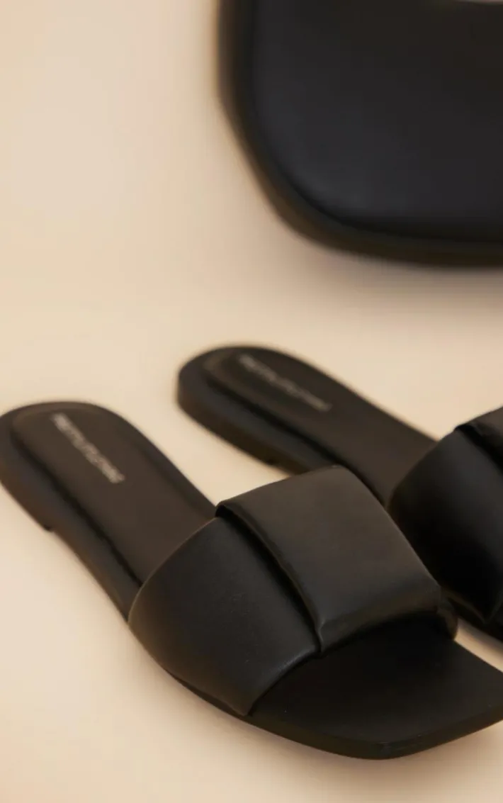 Get ready for the new season with these black square-toe quilted strap slides. Their black hue material makes them an easy styling piece and its quilted strap design is seriously chic. These slides are a must-have for the upcoming spring/summer season and are sure to have your outfit of the day looking on point.