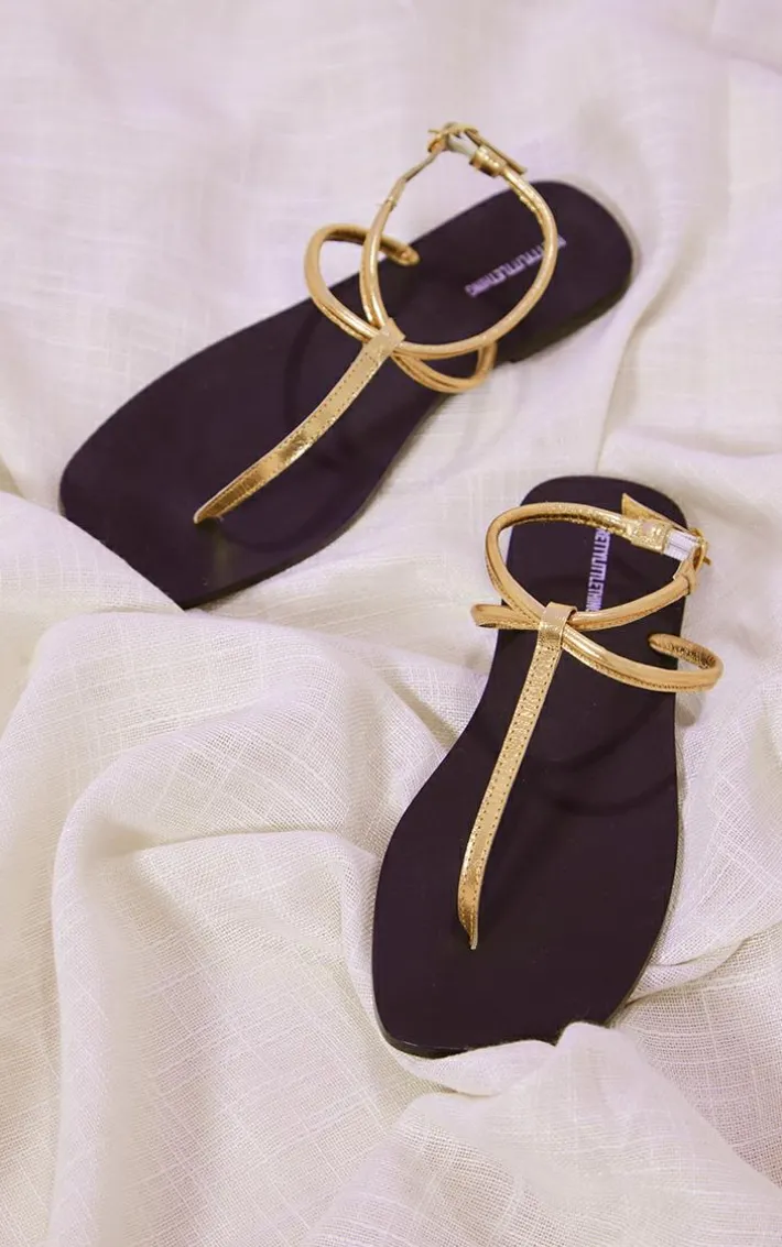 Make a statement this season with these gold leather square toe thong barely there strap flat sandals. These sandals are made from a gold leather material that will have all eyes on you wherever you go. With a square toe design and a thong barely there strap, what more could you need ? Add to your outfit of the day to complete the look we are loving.