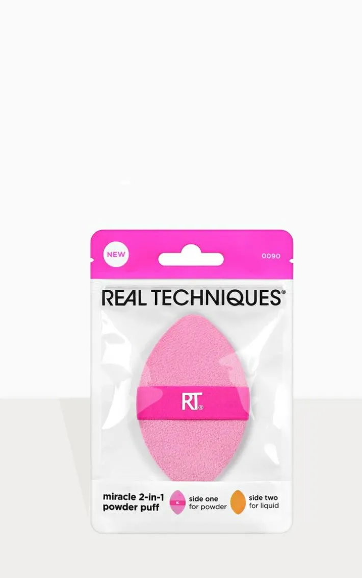 The Real Techniques Miracle 2-in-1 Powder Puff is a multipurpose, dual-textured makeup puff designed to work with powders, liquids, and creams for a soft, seamlessly set base.