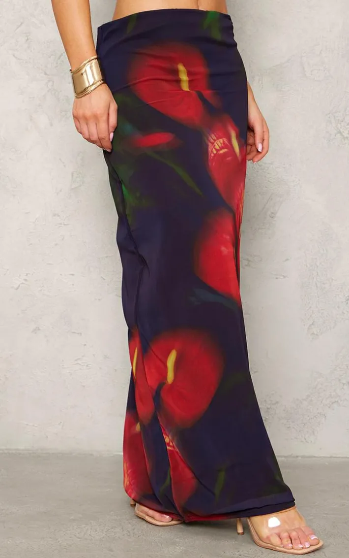 Your wardrobe is calling out for this red abstract flower print mesh maxi skirt for your new season look. Whether you’re switching up your off-duty wardrobe for the summer or need a last-minute weekend fit’, this maxi skirt has got you covered. Its red mesh material and abstract flower print, how could you resist? Pair with a crop top, your fave clear heels and a statement bag clear heels, it’s a definite yes from us.