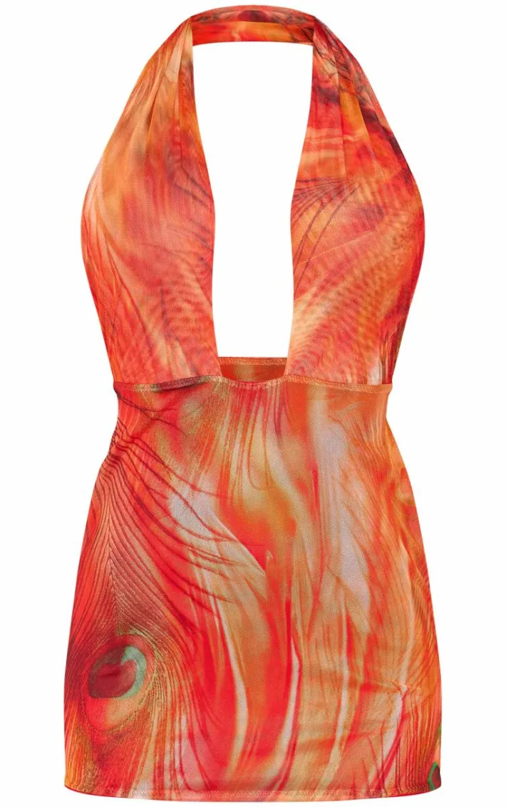 Get ready to have all the attention on you with this red abstract print mesh backless halterneck bodycon dress, we just can’t get enough. This dress features a red abstract print mesh material with a backless design and a halterneck style. Simply add your highest heels and gold bangles for a look no one will forget.
