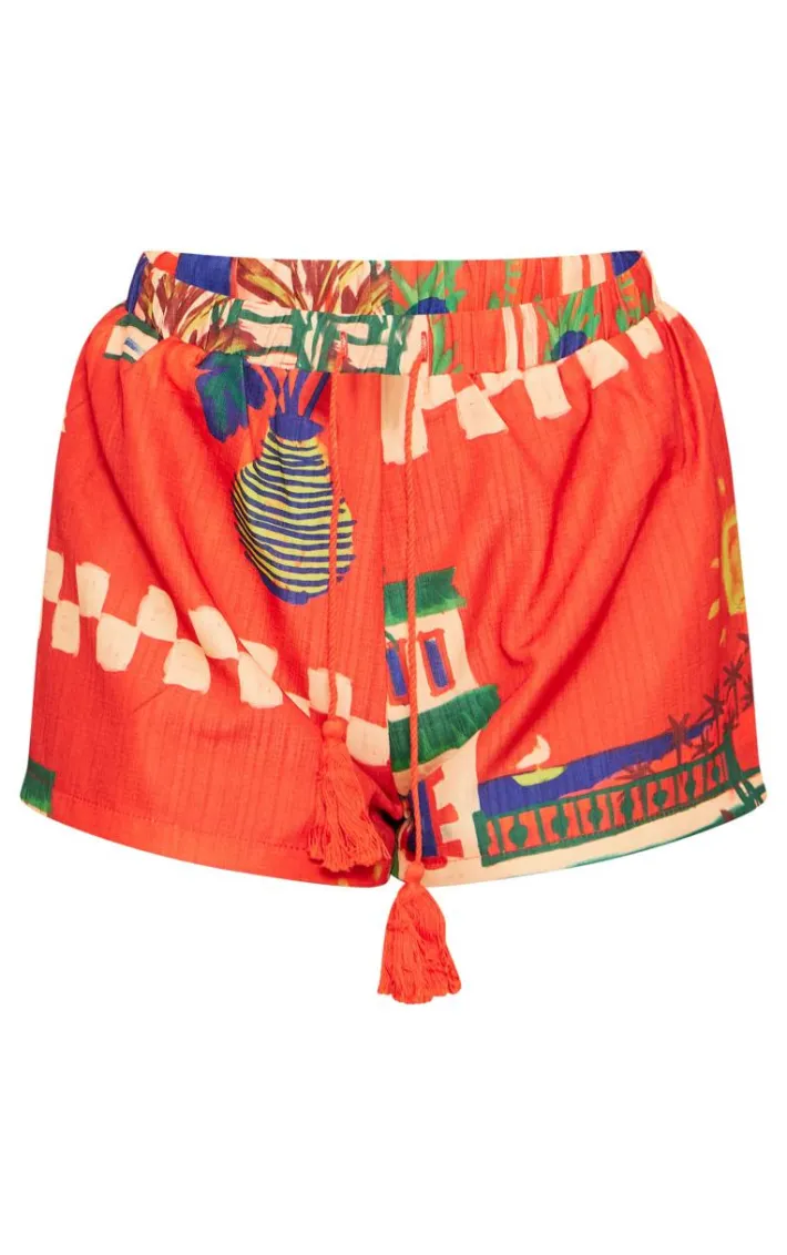Create a look no one will forget with this red abstract print woven shorts. Brought to you in a red abstract print woven material with a high waist and a figure-hugging fit, these shorts will have you standing out from the rest. Style with the matching top, sandals and accessories for a combo we can’tstop crushing on.