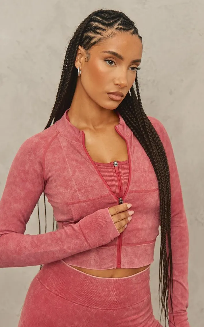 Take your gym look to a whole new level with this red acid wash seamless zip up cropped jacket. Brought to you in a red acid wash material with a zip up design, a seamless fit and a cropped length, we just can’t get enough. Team this cropped jacket with the matching leggings, a sports bra and sneakers for a fierce workout look you will be reaching for again and again.