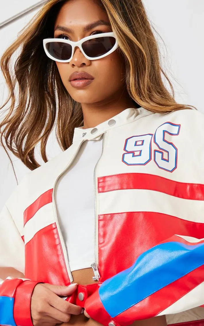 Say hello to your new season staple with this red and white contrast panel graphic back faux leather racer jacket. This jacket is brought to you in a red and white contrasting faux leather material with a graphic back and a racer style, how could you say no? From your everyday errands to your weekend styling this jacket is everything you need and more. Layer over your look of the day to instantly elevate the vibe.