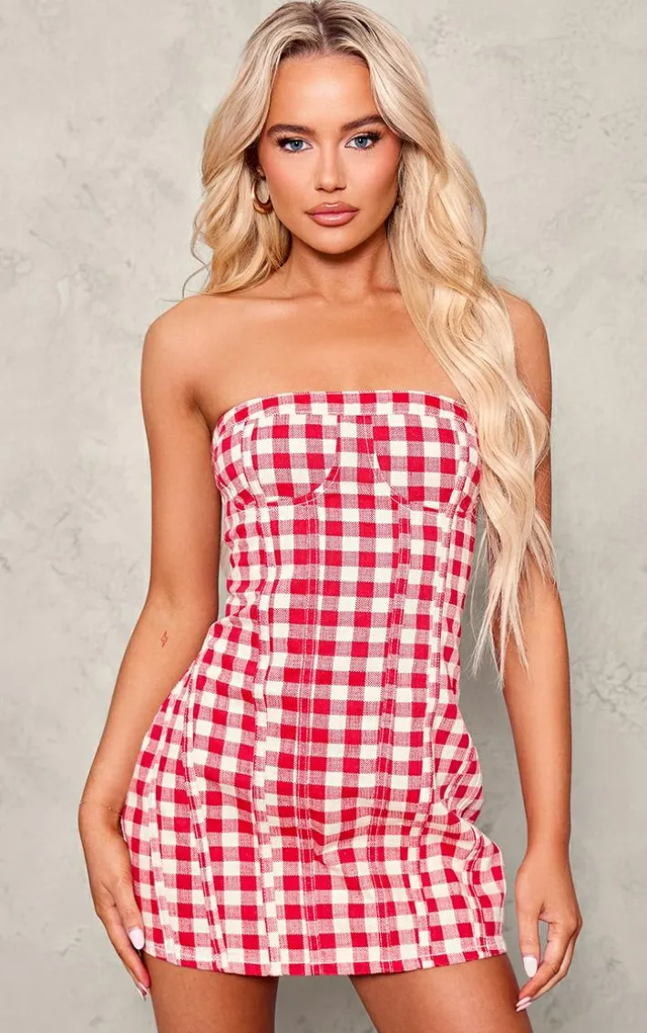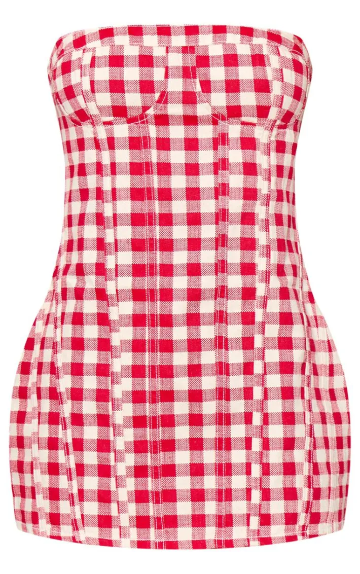 Say hello to your new season staple with this red and white gingham denim mini dress. Brought to you in a red and white gingham denim material with a figure-hugging fit and mini length, what more could you want? This mini dress is here to banish any of your what to wear dilemmas. Style with heeled boots and accessories for a look that will have you being the topic of everyone’s conversation.