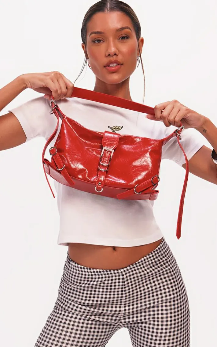 Add a pop ofred to your outfit of the day with this red buckle shoulder bag, it is everything we are loving for your weekend plans and beyond. Made using a red material with a buckle detail and a zip fastening, it’s a definite yes from us. Pair this shoulder bag with your fave new season fit for a flawless finish.