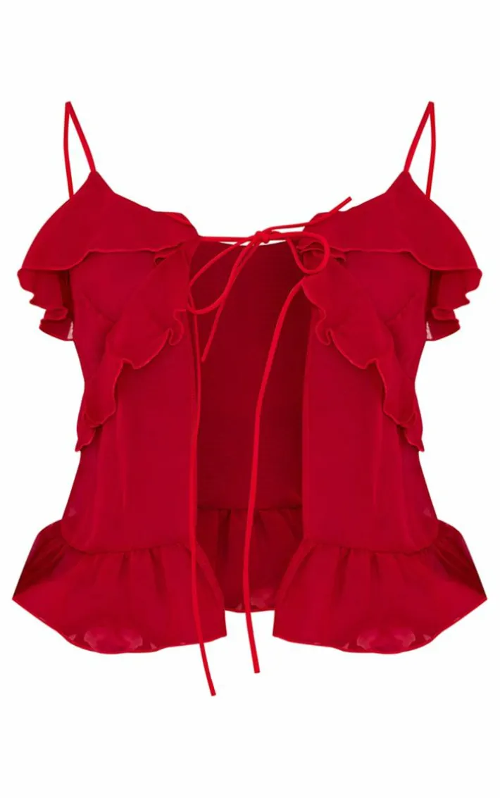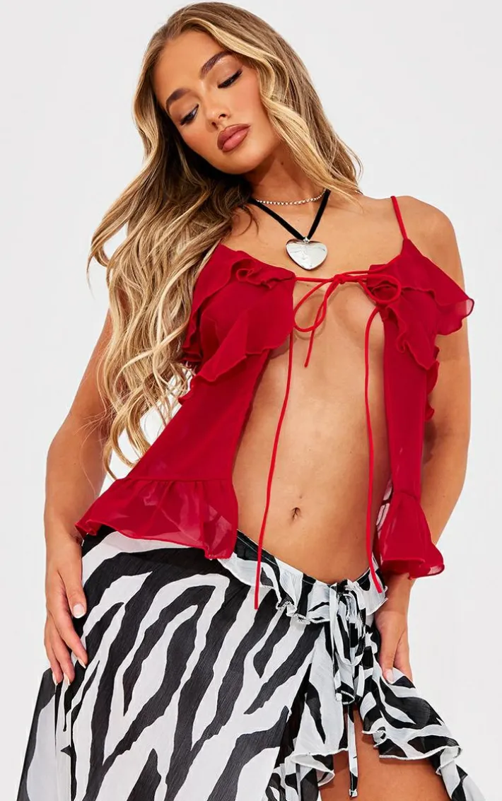 Found some last-minute weekend plans and need an unreal ‘fit? Then we have you covered with this styling staple, a red chiffon frill tie front cami top. With a red chiffon material with a tie front and a cami style, we’re obsessed. Work your styling techniques and add a printed skirt, high heels and accessories for a weekend-worthy finish that will gain all the likes.