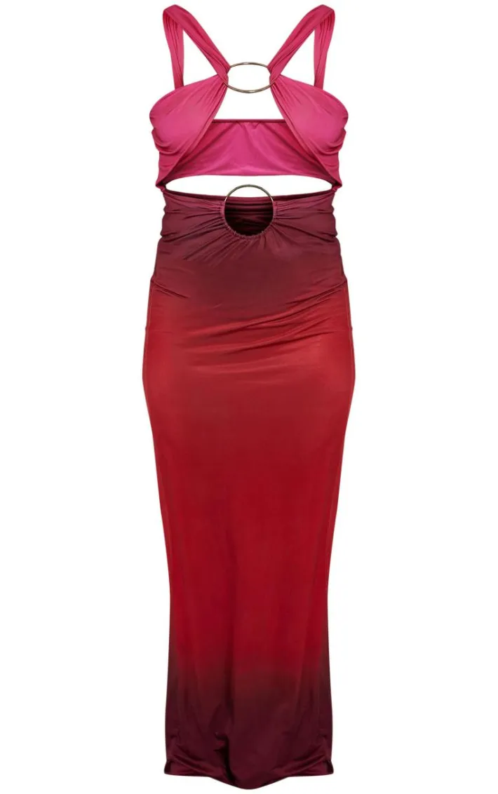 Get ready to have all eyes on you with this red ombre printed slinky ring detail extreme maxi dress. Brought to you in a red slinky material with an ombre printed design, what’snot to love? it’s ring detail and extreme maxi length is sure to turn heads. You are sure to earn all the likes with this dreamy piece. Finish off the look by pairing this with your fave heels and accessories. It’s a yes from us.